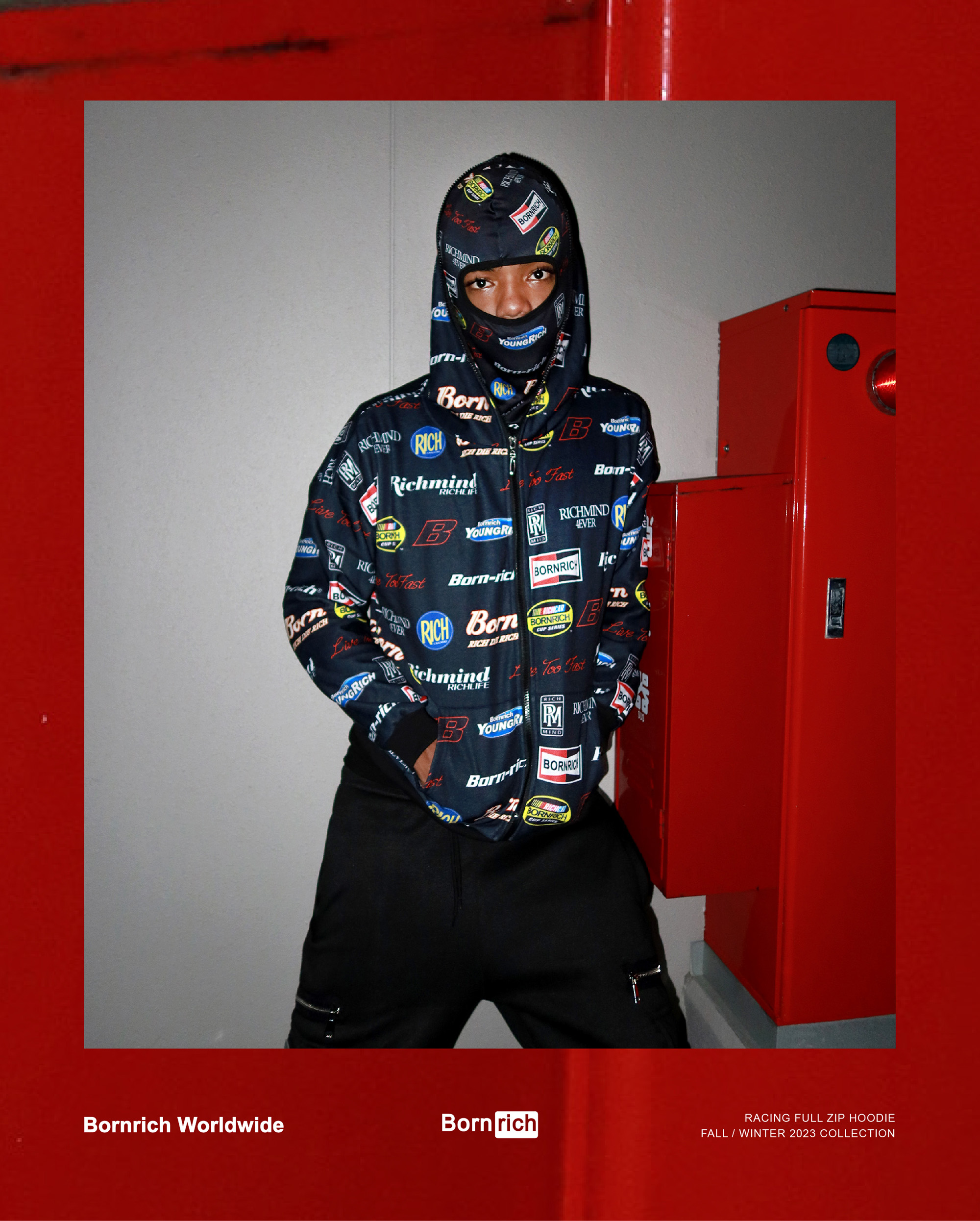 - RACING FULL ZIP HOODIE WITH ALL-OVER RACING LOGO PATTERN